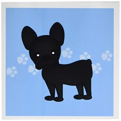 3Drose Cute Black Brindle French Bulldog Blue with Pawprints Greeting Cards, 6 by inches, Set of 12 (gc_25320_2)