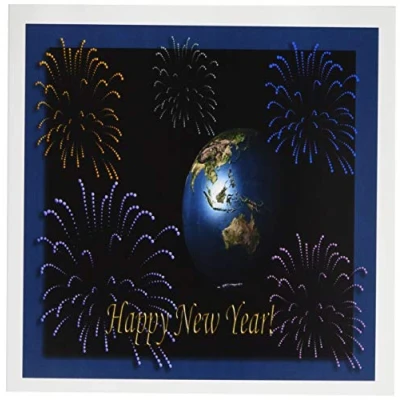 3Drose Earth with Fireworks 3D Greeting Cards, 6 by inches, Set of (gc_16356_1)