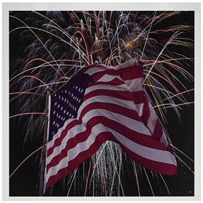3Drose Fireworks and American Flag Greeting Cards, 6 by inches, Set of (gc_14246_1)