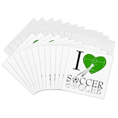 3dRose gc_101403_2 6 x Inch"I Love Soccer in Green" Greeting Card (Set of 12)