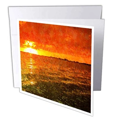 3dRose gc_10983_2 6 x Inch "Red Sun Setting" Greeting Card (Pack of 12)