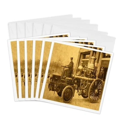 3dRose gc_16221_1 6 x Inch "Vintage Fire Engine Steam Pumper" Greeting Card (Pack of 6)