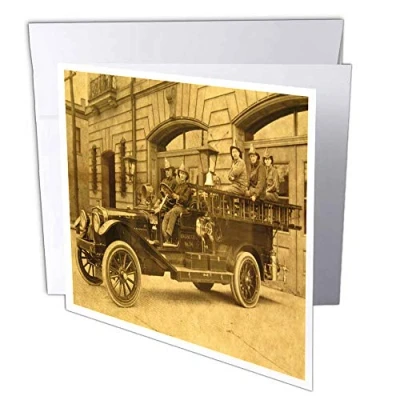 3dRose gc_16227_2 6 x Inch "Vintage Fire Engine with Company " Greeting Card (Pack of 12)