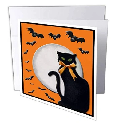 3dRose gc_16329_2 6 x Inch "Black Cat with Bats" Greeting Card (Pack of 12)