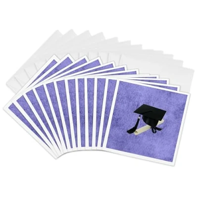 3dRose gc_172583_2 6 x Inch "Black Graduation Cap with Diploma on Purple Design" Greeting Card (Set of 12)
