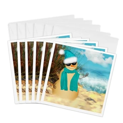 3dRose gc_173007_1 6 x Inch "Sandy Beach Sandman with Ocean View Fun Spoof on a Snowman" Greeting Card (Pack of 6)