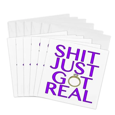 3dRose gc_222826_1 6 x Inch "Shit Just Got Real Purple" Greeting Card (Pack of 6)