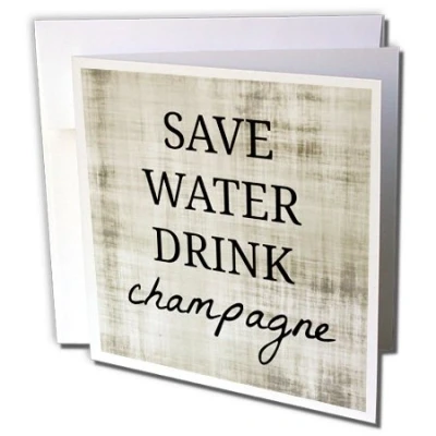 3dRose gc_224241_2 6 x Inch"Save Water Drink Champagne" Greeting Card (Set of 12)