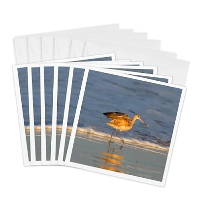 3dRose gc_229955_1 6 x Inch "Whimbrel Shorebirds Foraging Pismo Beach, California" Greeting Card (Pack of 6)
