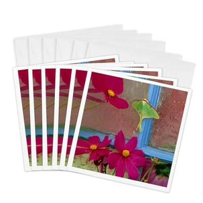 3dRose gc_231555_1 6 x Inch"USA, Pennsylvania Luna Moth on Old Window with Cosmos Flowers" Greeting Card (Pack of 6)
