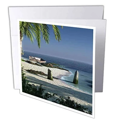 3dRose gc_23488_2 6 x Inch "White Sand and Palms" Greeting Card (Pack of 12)