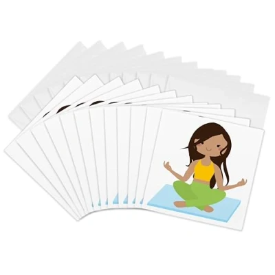 3dRose gc_236073_2 6 x Inch "Cute Girl in a Sitting Yoga Pose Illustration" Greeting Card (Set of 12)