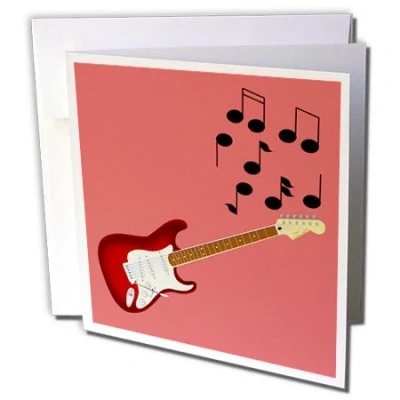 3dRose gc_24096_2 6 x Inch"Red Sunburst Guitar with Musical Notes" Greeting Card (Pack of 12)