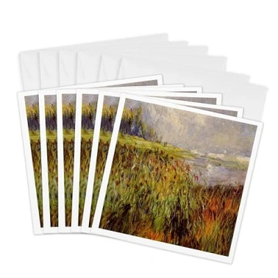 3dRose gc_243824_1 6 x Inch"Image of Renoir Painting Bulrushes on The Seine" Greeting Card (Pack 6)