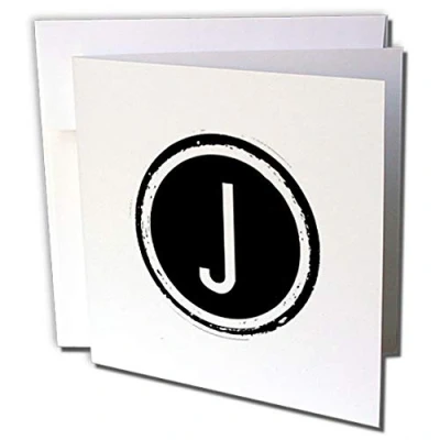 3dRose gc_244984_2 6 x Inch "The Letter J Monogram, Black on White Background" Greeting Card (Set of 12)