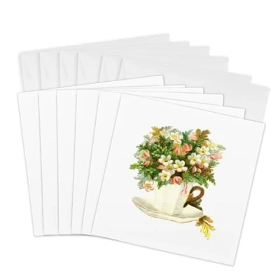 3dRose gc_245111_1 6 x Inch "Image of Painting Victorian Teacup with Flowers" Greeting Card (Pack 6)
