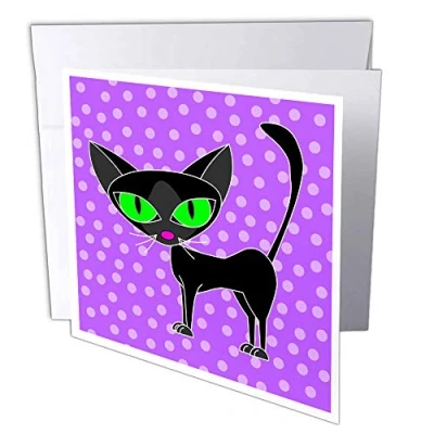 3dRose gc_24626_2 6 x Inch "Fancy Feline Black Cat Design in Purple" Greeting Card (Pack of 12)
