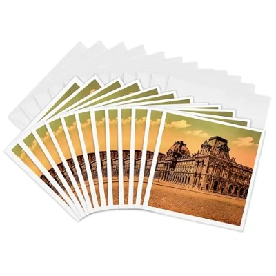 3dRose gc_246299_2 6 x Inch "Magic Lantern Slide Hand Colored Louvre Paris France French History" Greeting Card (Set of 12)