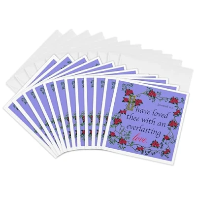 3dRose gc_252423_2 6 x Inch"Jeremiah 31 V3 I Have Loved Thee with an Everlasting Love" Greeting Card (Set of 12)