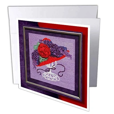 3dRose gc_25852_1 6 x Inch"Red Hat Embroidery" Greeting Card (Pack of 6)