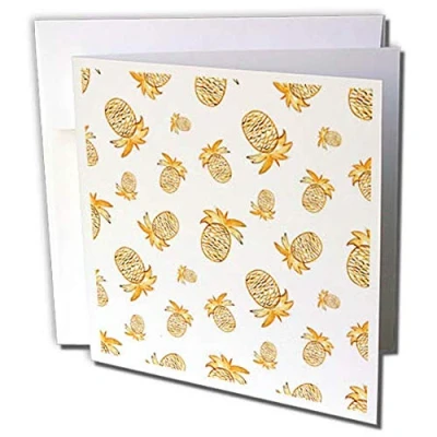 3dRose gc_263488_2 6 x Inch "Orange Pineapple Pattern" Greeting Card (Set of 12)