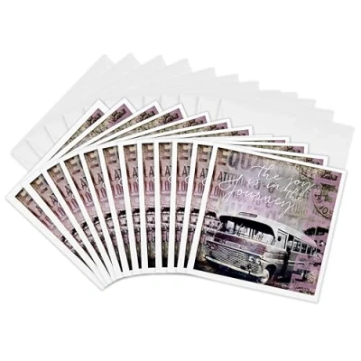 3dRose gc_274760_2 6 x Inch "Old Camper Bus Illustration with Typography" Greeting Card (Set of 12)