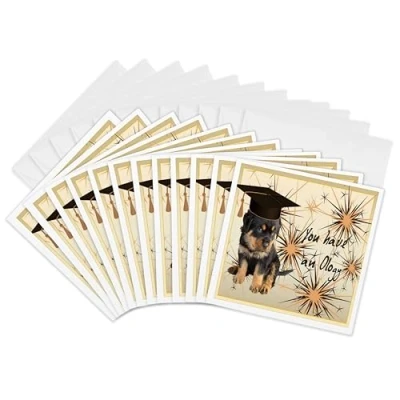 3dRose gc_30081_2 6 x Inch "Rottweiler Puppy College Graduation" Greeting Card (Pack of 12)