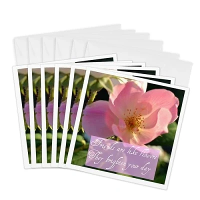 3dRose gc_32755_1 6 x Inch "Friends are Like Flowers Inspirational Quotes Photography" Greeting Card (Pack of 6)