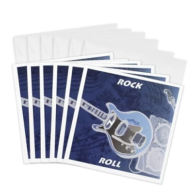 3dRose gc_33211_1 6 x Inch "Rock N Roll Blue" Greeting Card (Pack of 6)