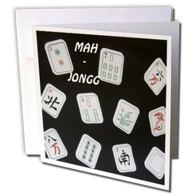 3dRose gc_34915_1 6 x Inch "Mah Jongg Tiles on Black" Greeting Card (Pack of 6)