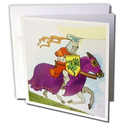 3dRose gc_35114_2 6 x Inch"Red Yellow Violet Knight and Horse" Greeting Card (Pack of 12)