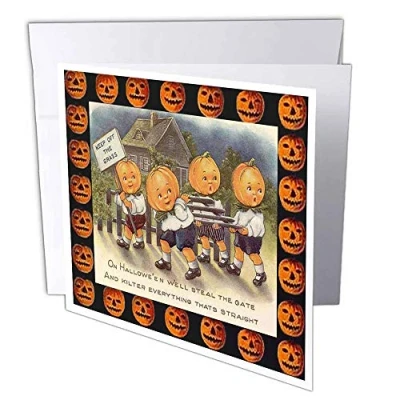 3dRose gc_36409_1 6 x Inch"Pumpkin Head Children" Greeting Card (Pack of 6)