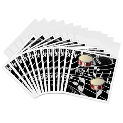3dRose gc_38199_2 6 x Inch "Red Drums on Music Notes" Greeting Card (Pack of 12)
