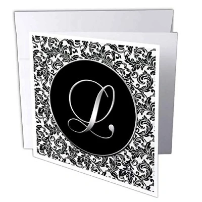 3dRose gc_38761_2 6 x Inch "Letter L Black and White Damask" Greeting Card (Pack of 12)