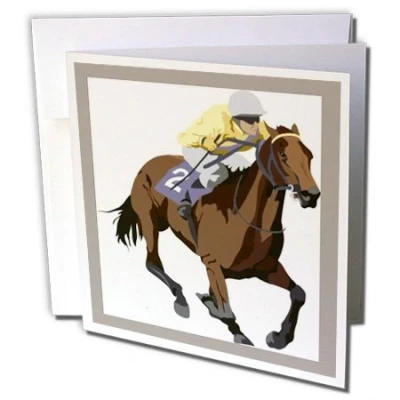 3dRose gc_38905_1 6 x Inch "Jockey on Horseback" Greeting Card (Pack of 6)