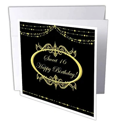 3dRose gc_39512_1 6 x Inch "Black and Gold Sweet 16 Happy Birthday" Greeting Card (Pack of 6)