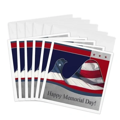 3dRose gc_40419_1 6 x Inch "Memorial Day, Flag Eagle" Greeting Card (Pack of 6)