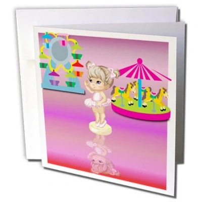 3dRose gc_58836_2 6 x Inch"Little Ballerina on Theme Park Background" Greeting Card (Pack of 12)