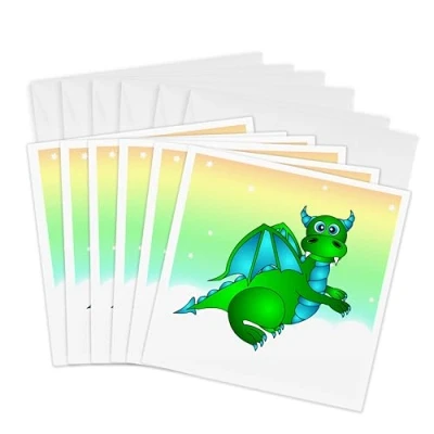 3dRose gc_6090_1 6 x Inch "Green Dragon Twilight Flight" Greeting Card (Pack of 6)