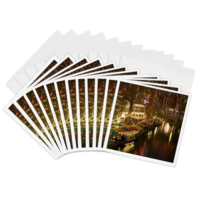 3dRose gc_94613_2 6 x Inch "USA, Texas, San Antonio Riverwalk Area/Evening Us44 Wbi00 Walter Bibikow" Greeting Card (Set of 12)