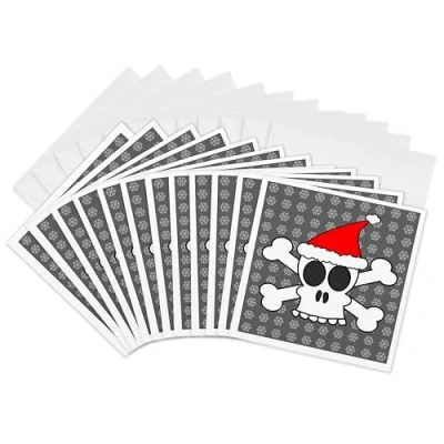 3Drose Skull and Crossbones Red Santa Hat Gray Snowflakes Greeting Cards, 6 by inches, Set of 12 (gc_6362_2)