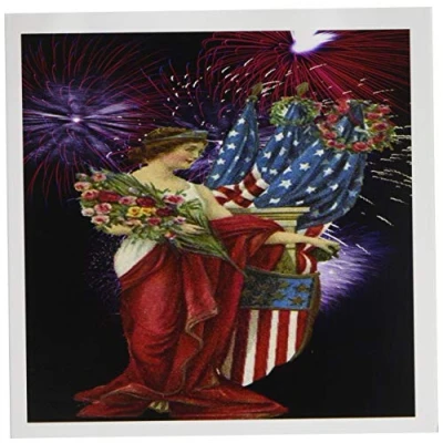 3Drose Vintage Lady and Fireworks Greeting Cards, 6 by inches, Set of 12 (gc_14250_2)