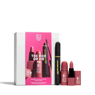 3ina Makeup The Ride or Die Kit Gift Set Iconics Nude Lipstick + Blush Stick Black Mascara