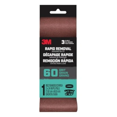 CUTS FASTER than traditional belts CUTS MORE than traditional belts RESISTS heat buildup and moisture Made from premium aluminum oxide grain For use on wood, plastic and metal Available Sizes : 3" x 18", 3" x 21", 3" x 24", 4" x 24" and 4" x 36" Available in grits: COARSE: 36, 60, 80; MEDIUM: 120 Package Contents: 1 Belt/Pack Size: 3 in. x 24 in. Grit: Coarse / 60, Weight: 0.16 pounds, Manufacturer: 3M