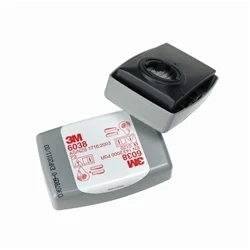 3M 6038 P3R (nuisance level organic vapour and acid gas and hydrogen flouride). Encapsulated Particulate Filters. Ideal for wet conditions Hazard is contained within filter media, protected by plastic case avoiding risk of skin contamination on removal of filter. Easy clean surface Standard: EN143 Approval: CE marked Maximum use concentrationWhen used with half masks: 20xWEL Hydrogen Flouride: 10xWELWhen used with Full face masks: 40xWEL, Hydrogen Flouride up to 30 ppm Below WEL for gases and vapoursWorkplace Exposure Limit1 BOX = 20 FILTERS (NOT PAIRS)