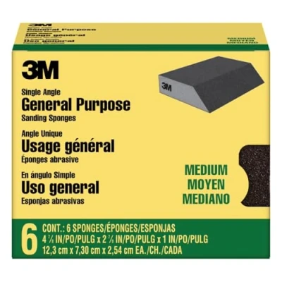 Use wet or dry Great for all purpose sanding Washable and reusable Angled for corner/detail work Use for interior and exterior projects Includes 6 sanding sponges For the best results, sand with the grain of the surface and work through a sequence of grits, from coarse to very fine, skipping no more than 1 grit between each sanding step (other grits not included) Available in extra fine, fine, medium and coarse grits Size: 4 7/8 in. x 2 7/8 in. x 1 in Medium grit, Weight: 0.42 pounds, Manufacturer: 3M