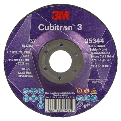This product is designed, manufactured, labeled, and packaged for sale to industrial and professional customers for workplace use; it is not intended for consumer sale or use MULTIPLE FUNCTIONS: Used both as a grinding wheel and cut-off wheel, making it ideal for cutting, grinding, gouging, and more ENHANCED SPEED: Delivers up to 5% increased cut rate compared to 3M Cubitron II Performance Abrasives to help reduce the amount of time and pressure required to get the job done RIGID, REINFORCED, RESIN-BONDED WHEEL: Designed to be used both as a grinding wheel and as a cut-off wheel on both stainless and mild steel substrates IMPROVED USABILITY: A reformulated wheel composition offers better balance and a smoother action while maintaining best-in-class performance to help reduce rework and enhance finish quality LONG LASTING: Designed to last longer than leading competitors