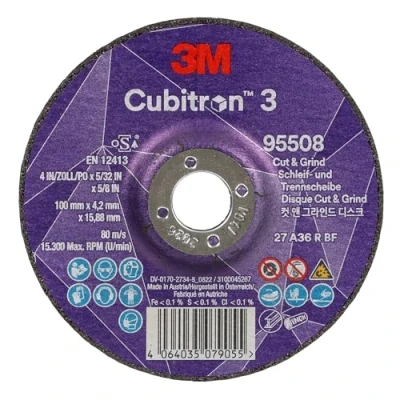 3M Cubitron 3 Cut and Grind Wheel, 95508, 36+, T27, 100 mm x 4.2 15.88 mm, EN, 10/Pack