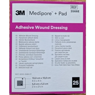 3M Medipore(TM)+Pad 10x10 cm Adhesive Dressing in TNT with absorbent pad, Pack of 25