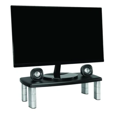 3M Adjustable Monitor Stand, 50.8 x 30.48 x 14.9 cm - Black/Silver black/silver MS90B 3M Office Color: Black/Silver Package Weight: 1.383 kilograms Supports monitors weighing up to 18 kg Three adjustable heights and storage space underneath to maximise desk space